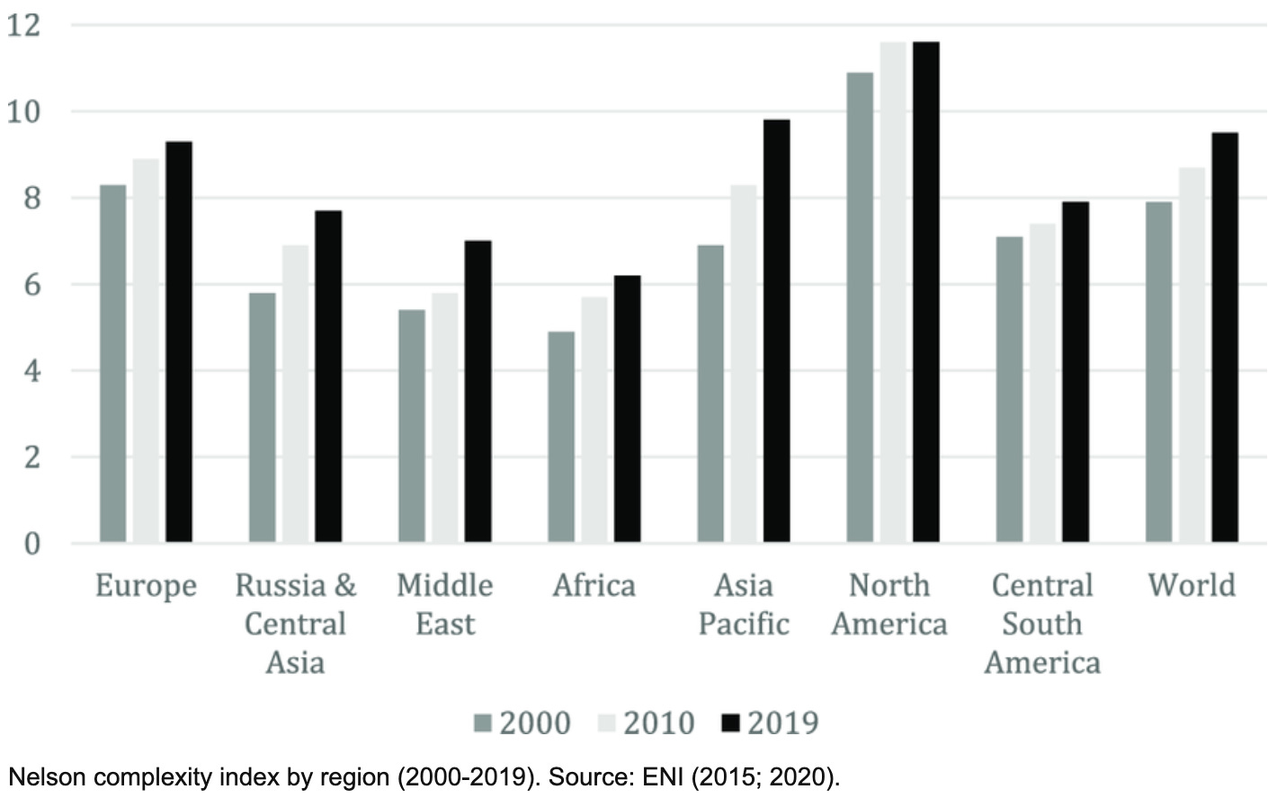 The refinery’s complexity (measured by the Nelson Complexity Index)
